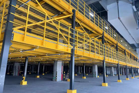 鋼結構平臺 鋼結構閣樓平臺 閣樓平臺是用貨架做樓面支撐,可設計成多層樓層(通常2-3層)。設置有樓梯、扶欄和升降機等。這是一種充分利用空間的簡...